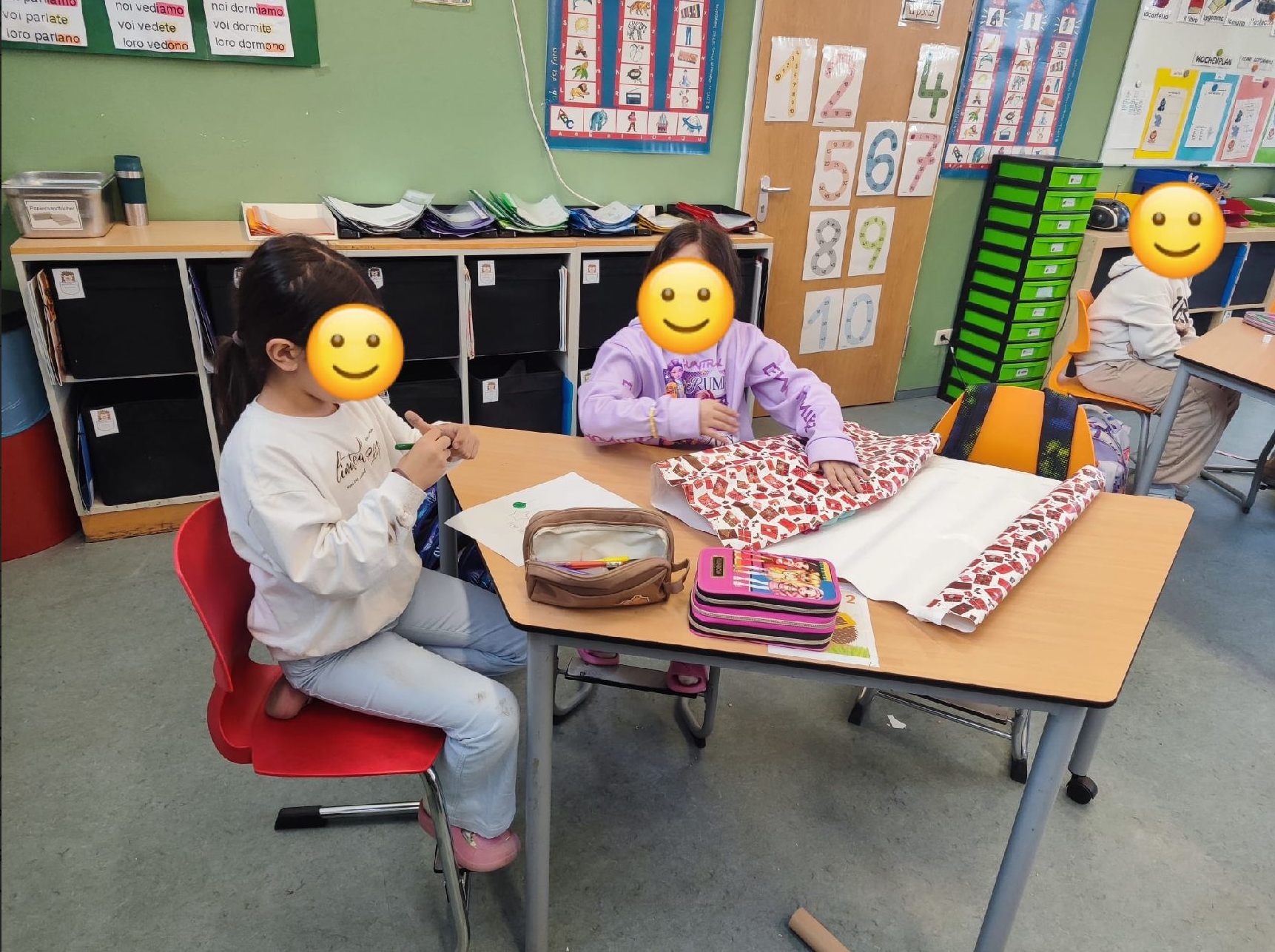 Alle Kinder des Jahrgangs 3 der Leonardo da Vinci-Grundschule verpackten fleißig Weihnachtsgeschenke und schrieben kurze Briefe für die Kinder des Flüchtlingsunterkunft. Am 10. Dezember wurden die Geschenke von den Lehrern in das Flüchtlingszentrum gebracht. Die kleinen Gäste des Zentrums freuten sich und dankten der Schule herzlich.